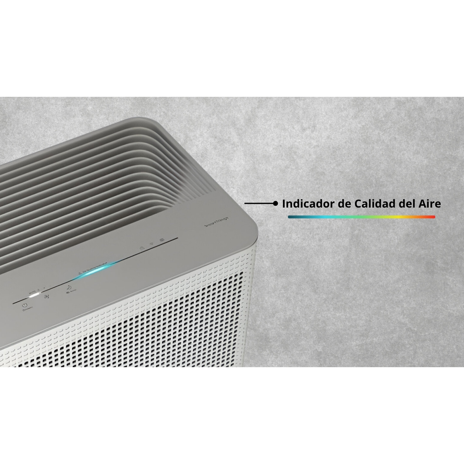 Sensor inteligente + panel LED con 4 colores, que muestra la calidad del aire en tiempo real.